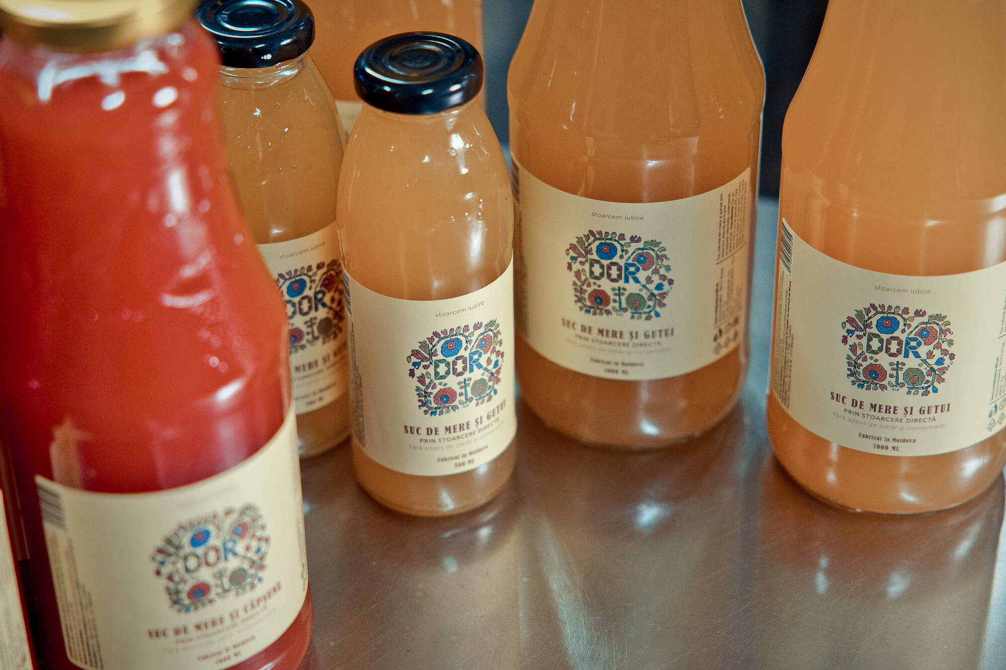 Astăzi, echipa are o capacitate de producere semnificativ mai mare, iar sucul „Dor” este prezent în peste 30 de cofetării și magazine specializate din Chișinău. Producția include sucuri naturale din mere, pere, gutui, prune sau căpșuni – toate obținute prin stoarcere directă, ușor pasteurizate la 80°C, pentru a păstra gustul autentic și nutrienții din fructe.
