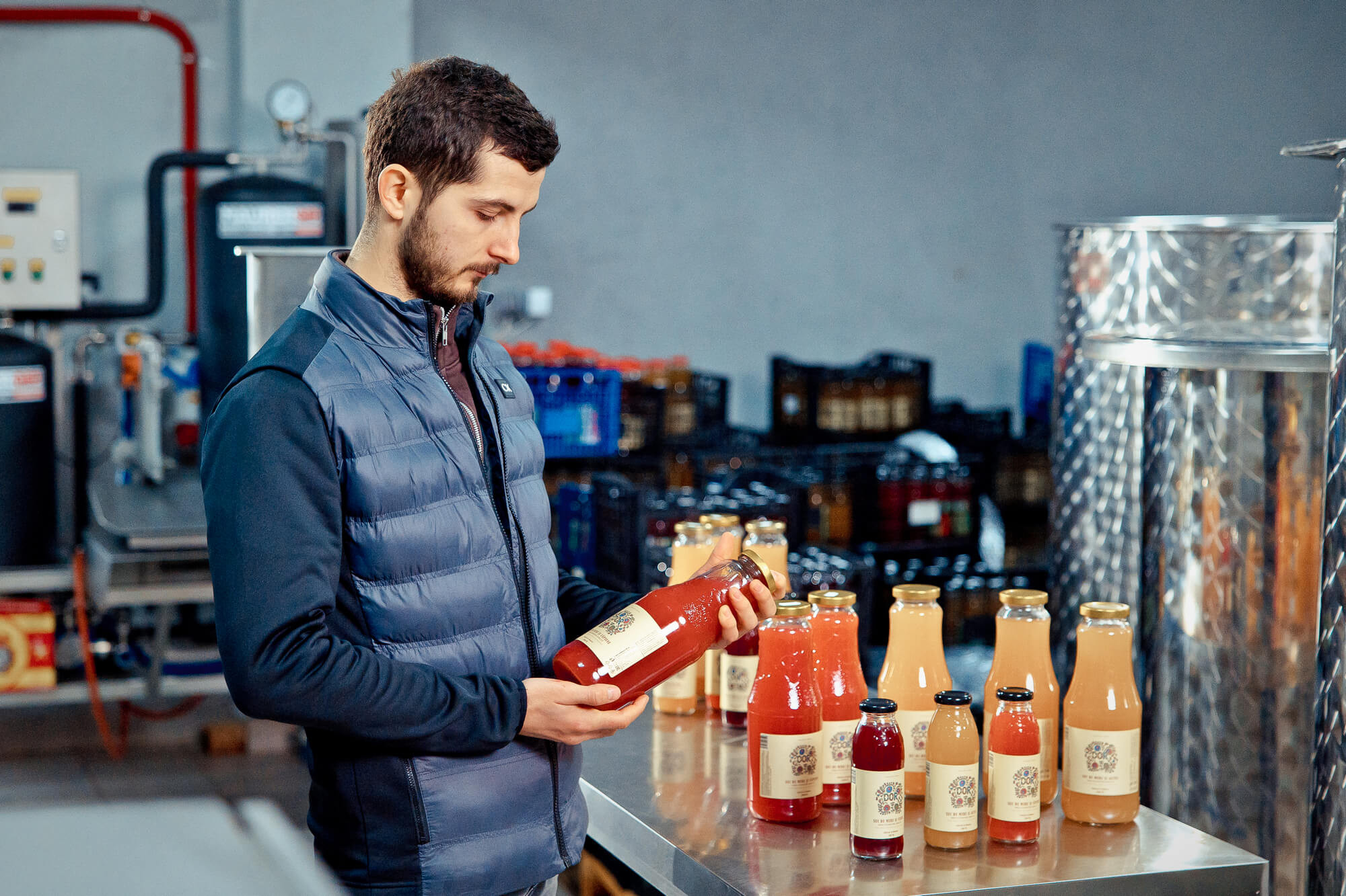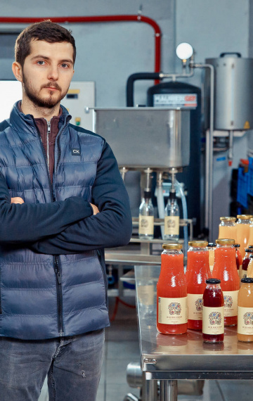 „Afacerea am început-o acum patru ani, pornind de la o simplă idee de a transforma materia primă într-un produs finit, pentru a adăuga plus-valoare”, povestește antreprenorul. Totul a pornit cu un utilaj achiziționat din România, cu ajutorul căruia se produceau aproximativ 500 de litri de suc pe zi.