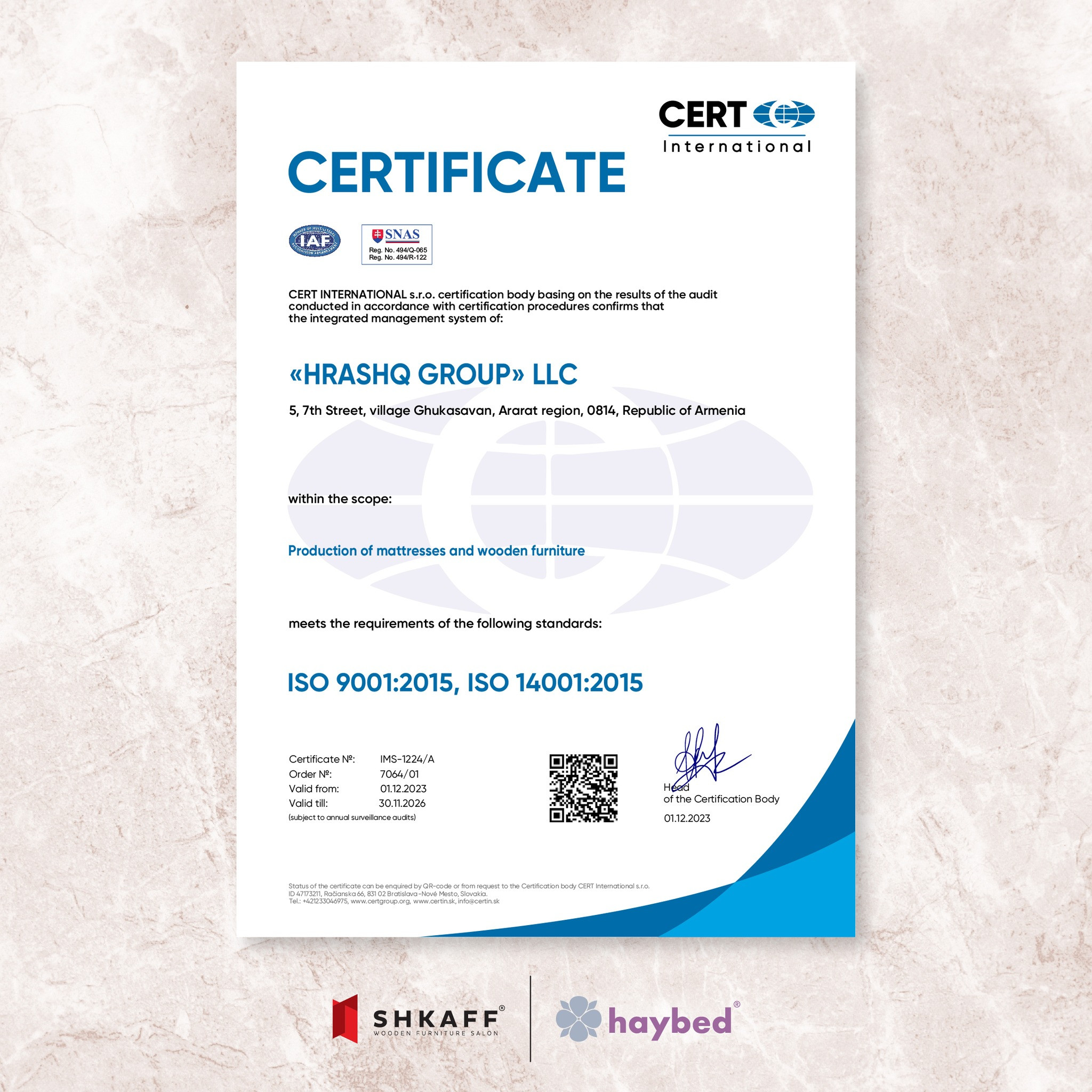 In 2023, the company took another strategic step by obtaining ISO 9001:2015 and ISO 14001:2015 certifications with EU4Business support. These certifications strengthened the company’s commitment to quality manufacturing and environmentally responsible production — two pillars that are now central to Hrashk Group’s identity.