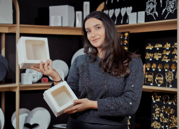 Totul a început în 2022, când Cătălina a fondat un SRL specializat în realizarea decorațiunilor din placaj, sticlă organică și lemn. Însă, din dorința de a răspunde cerințelor clienților și tendințelor actuale, afacerea a evoluat rapid spre un nou segment: producerea cutiilor din carton pentru produse de cofetărie.